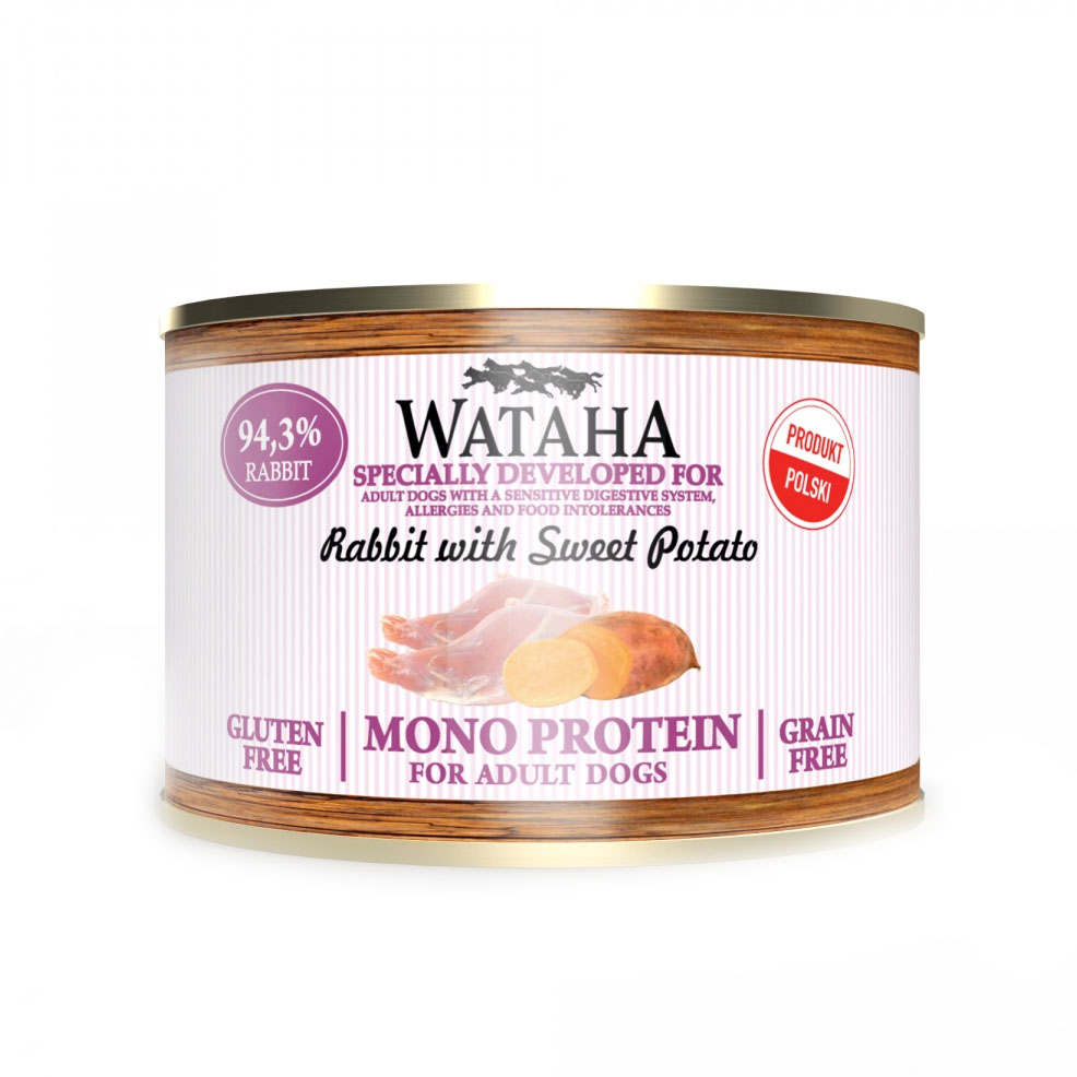 Conserva Wataha MONO PROTEIN Pentru Caine Adult, 94, 5% Carne, Cu Iepure Si Cartof Dulce, 200g