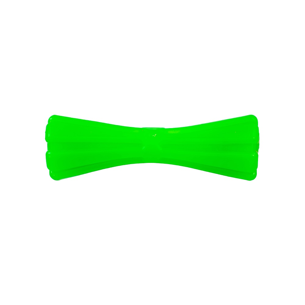 Jucărie din cauciuc eco pentru câini, formă de ganteră, 8 cm, verde. Durabilă și sigură, stimulează activitatea fizică și mentală. Ideală pentru joacă și aport, non-toxică și prietenoasă cu mediul.