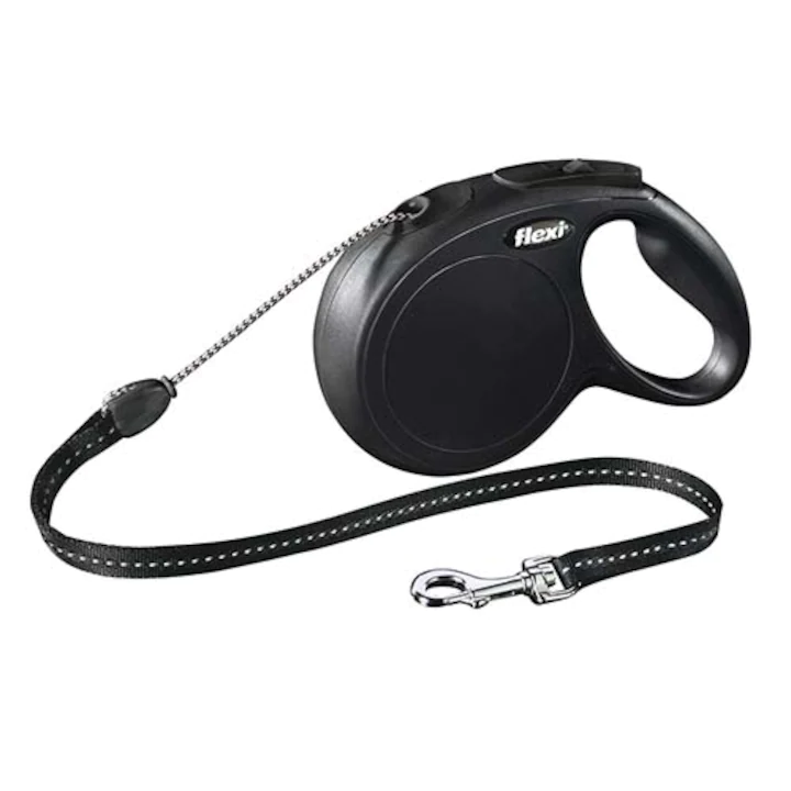 Lesa Flexi Classic, cu snur, marimea M, 8m/20 kg, Negru