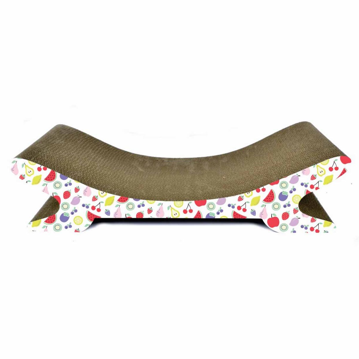 Zgârietorul din carton pentru pisici, model șezlong, este conceput pentru a oferi pisicii tale un loc confortabil și atrăgător pentru a-și ascuți ghearele și a se relaxa. Cu dimensiuni de 68.58 x 22.86 x 17.78 cm, acest zgârietor are un design ergonomic, similar unui șezlong, care permite pisicii să se întindă și să se bucure de un masaj natural al ghearelor. Partea exterioară a zgârietorului este decorată cu un model vesel și colorat, cu diverse fructe și motive naturale, care adaugă o notă jucăușă și estetică în orice spațiu. Este fabricat din carton durabil, fiind un accesoriu ecologic și practic, ideal pentru uzul zilnic. Acest zgârietor nu doar protejează mobila, dar oferă și un loc plăcut pentru pisică să se relaxeze.
